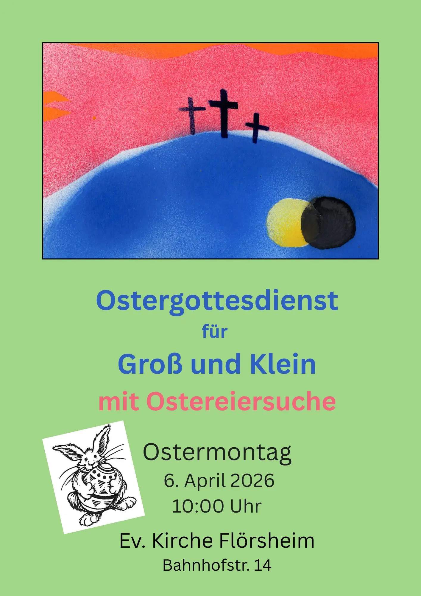 | 5. März 2026, 15 – 17 Uhr | Osterkörbchen-Basteln für den Familiengottesdienst mit Ostereiersuche am Ostermontag. Es werden dringend Bastlerinnen und Bastler gesucht! | |||