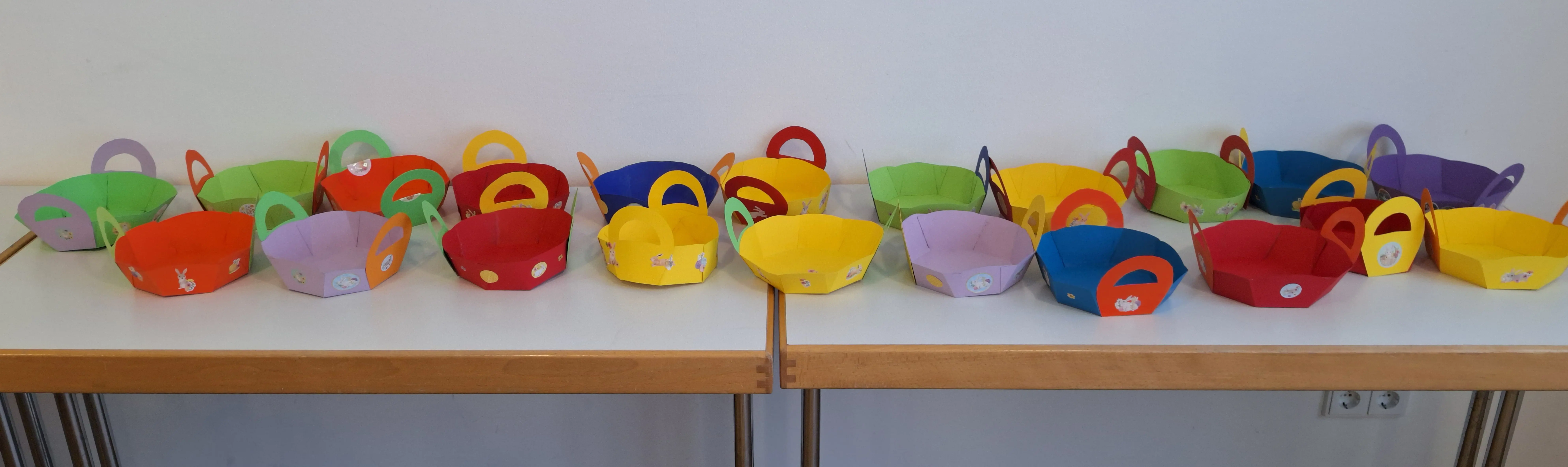 (c) Ev.Kirchengemeinde FlörsheimMärz 2026: Viele helfende Hände haben schon bunte Körbchen für die Ostereier-Suche am Ostermontag gebastelt.