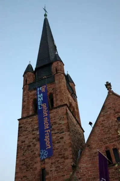 07.03.2012: Der Kirchenvorstand der Evangelischen Kirchengemeinde Flörsheim stellt fest, dass die vom Grundgesetz geschützte ungestörte Religionsausübung im Bereich ihrer Kirchengemeinde in einem nicht erträglichen Maß durch den Lärm landender Flugzeuge des Frankfurter Flughafens gestört wird.